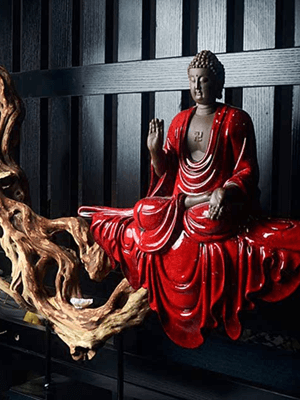 Tượng Phật Thích Ca Áo Hồng Tĩnh Tâm Ngồi Đài Sen Bằng Bột Đá, Cao 48cm